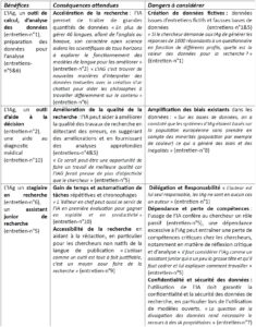 Tableau 1 : L’IAg un outil pour la recherche : des bénéfices mais aussi des dangers