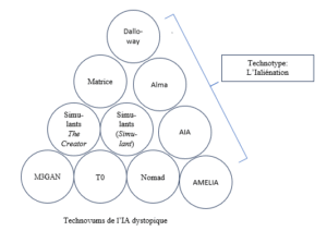 Ainsi, même si une IA connait un scénario fiction, comme une dystopie où les machines dominent l’humanité, elle ne cherche pas à le reproduire a priori. Elle peut en parler, le commenter, mais pas l’incarner. C’est ce qui distingue l’imitation narrative de l’intention causale. Pour l’heure, les IA ne seraient pas dotées d’une faculté d’incarnation des récits qu’elles véhiculent. Toutefois, il est possible qu’une IA programmée pour avoir une sensibilité aigüe pour la science-fiction dystopique oriente ses réponses dans une perspective performative. Dès lors, il est envisageable et souhaitable de doter les IA d’un filtre éthique, leur donnant la capacité à juger la validité morale d’un récit, ou plus exactement les finalités des actions des histoires qu’elle aura assimilées. En effet, un autre aspect de la question mène à envisager une IA programmée pour considérer positivement les scénarios dystopiques, et donc orienter les utilisateurs vers l’appréciation de sociétés totalitaires ou dictatoriales. Une telle IA, dont on pourrait imaginer qu’elle serait au service d’une organisation négative, pourrait ainsi chercher à réaliser l’enfer sur Terre en s’inspirant de récits de science-fiction dystopiques. Il n’est pas exclu qu’à l’avenir, certaines IA diffusent une pensée cherchant à réaliser les pires dystopies en influençant des humains par des réponses inspirée par un corpus de récits préalablement assimilés.