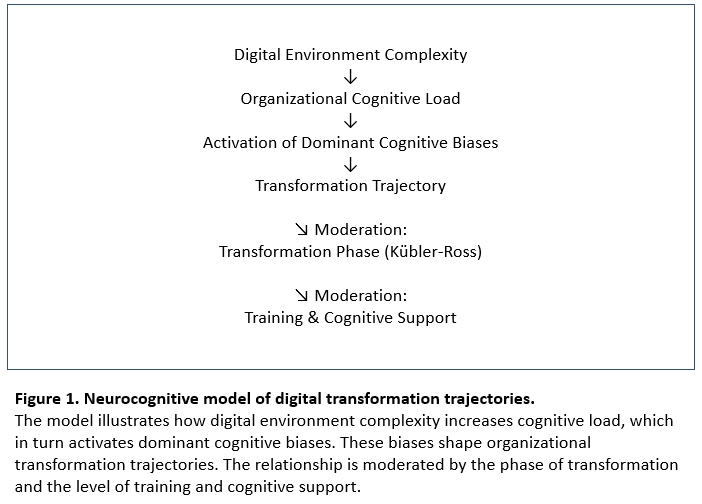 L’article propose un modèle testable reliant complexité numérique, charge cognitive, activation des biais et trajectoires d’appropriation, ouvrant la voie à un pilotage prédictif des transformations numériques fondé sur des indicateurs cognitifs.